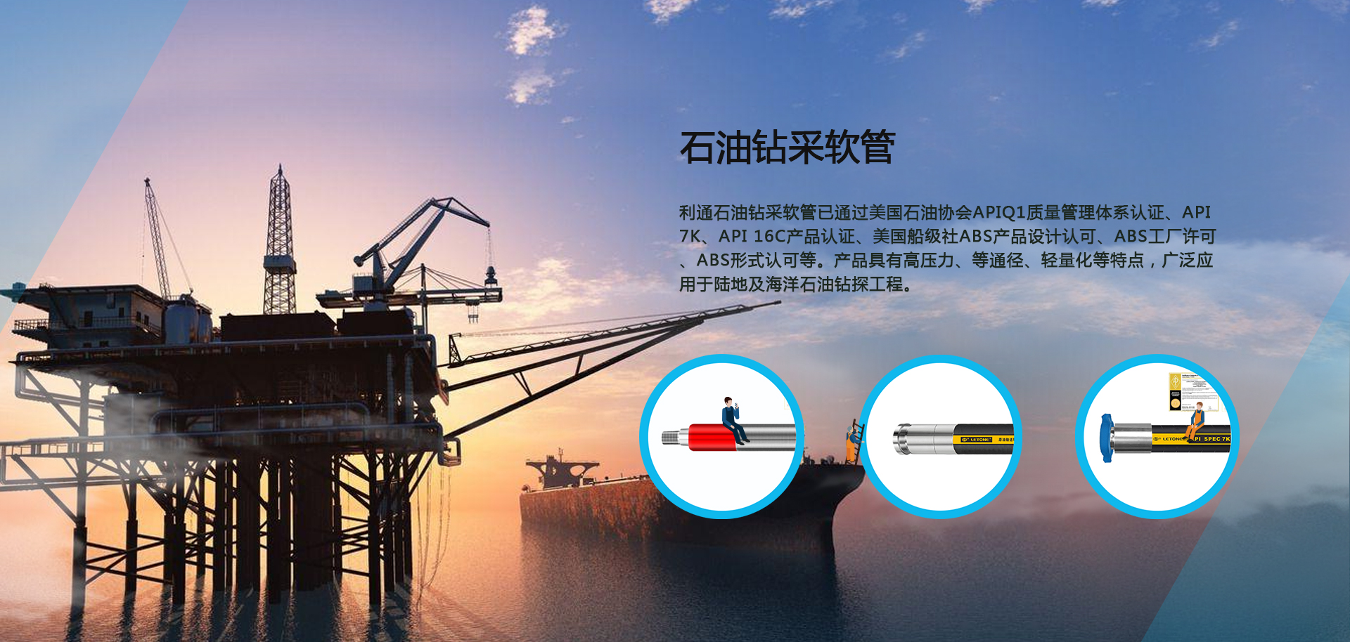 石油鉆采軟管已通過美國石油協會API Q1質量管理體系認證(API 7K & API 16C & API 16D)、API 7K、API 16C產品認證、美國船級社ABS產品設計認可(API 7K & API 16C)、ABS工廠許可、ABS形式認可等。